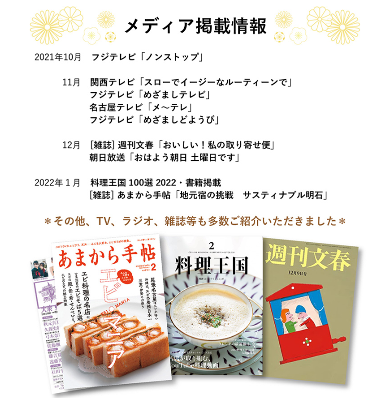 「明石 めで鯛や」メディア掲載情報